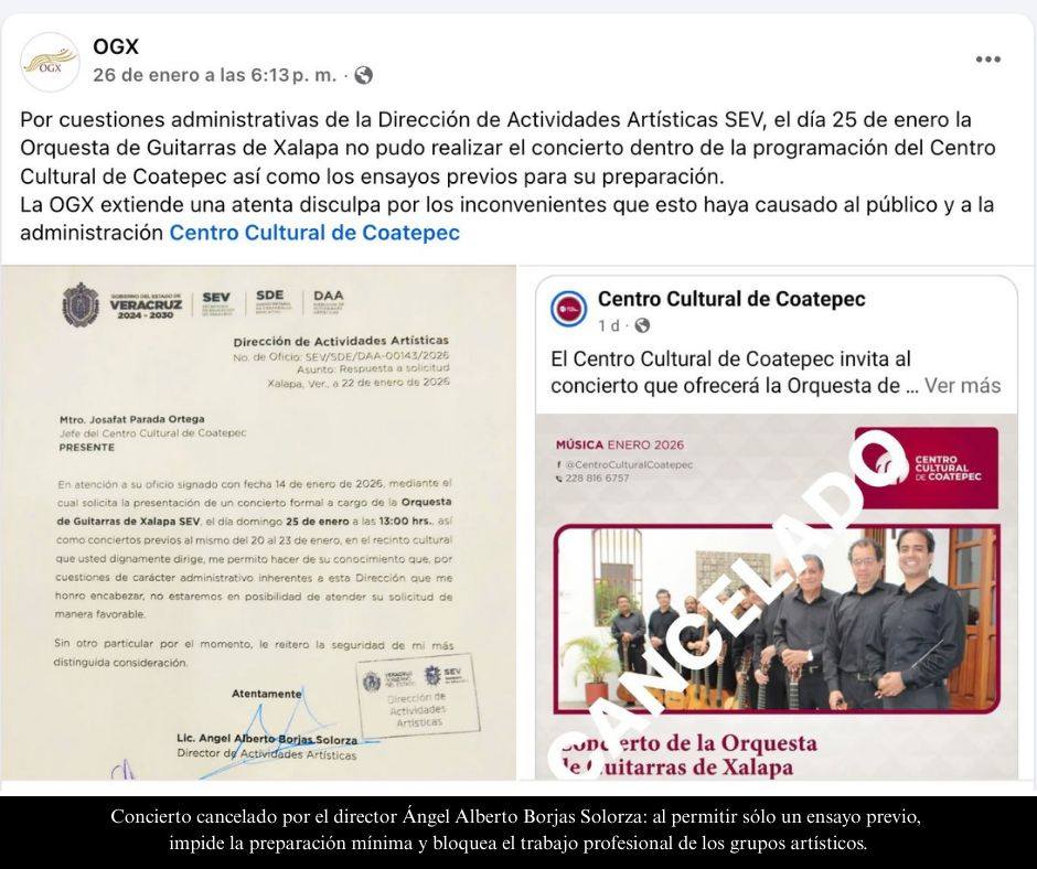 Exigen la intervención inmediata de las autoridades educativas estatales, la restitución de condiciones dignas de trabajo, la designación de una conducción con perfil en gestión cultural y la reactivación real —no discursiva— de la producción y difusión artística en beneficio de la comunidad educativa veracruzana.
